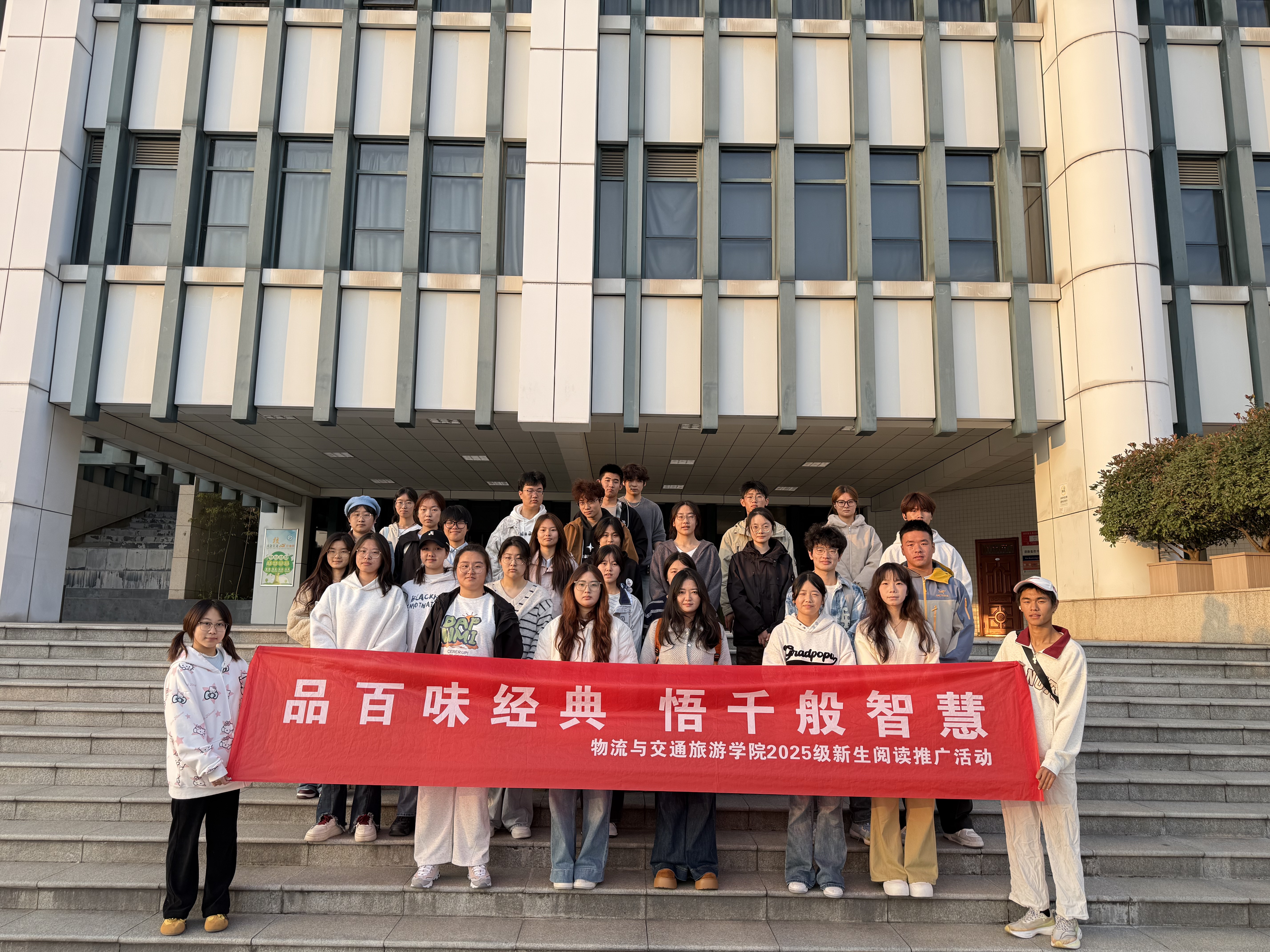 10 月 27 日下午,物流与交通旅游学院联合校图书馆举办的 “阅读 遇见更好的自己”新生入馆教育活动顺利开展。学院 25 级全体班长、学委作为新生代表参与活动,开启了一场兼具专业性、趣味性与文化性的资源探索之旅,其中周恩来文化馆与淮商文化馆的参观环节,更让这场求知之旅多了份精神传承的厚重。