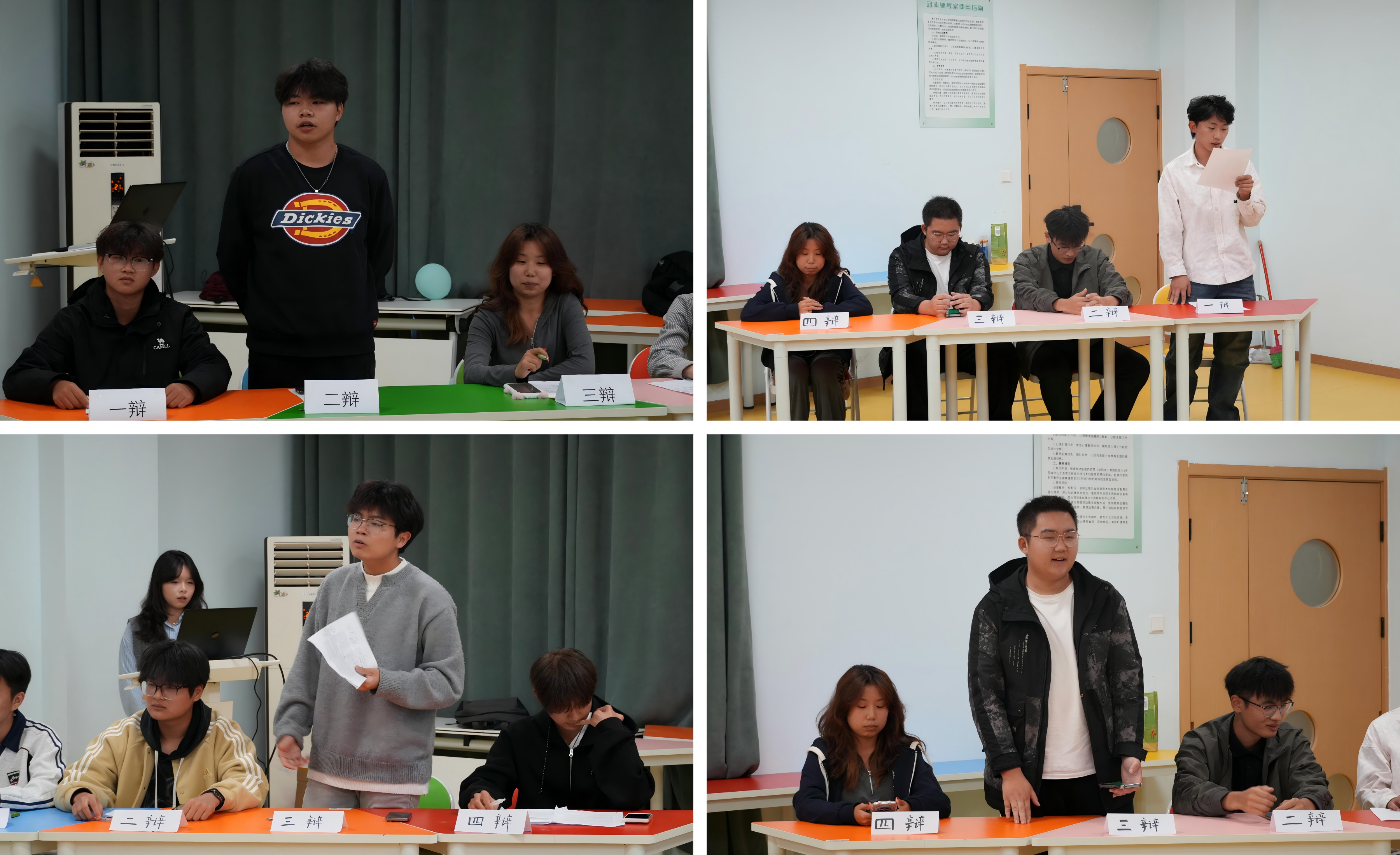 本次初赛聚焦学生生活与社会热点,精心设置5组多元辩题,涵盖正义界定、情感认知、现实选择、人际关系等多个维度,既贴近学生日常,又兼具思想深度。具体辩题包括“迟到的正义算不算正义”“从未在一起和最终没在一起哪个更遗憾”等,这些辩题直击生活痛点与认知难点,有效激发了学生对社会现象、情感议题的深度思考与理性探讨。围绕5组辩题,10支参赛队伍两两对垒,展开精彩竞技。