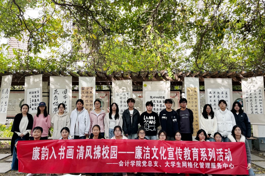 10月29日,会计学院党总支廉洁文化书法展在学校“清风苑”廉洁文化教育基地正式开展。本次展出的作品均为前期面向全院征集的优秀学生作品。