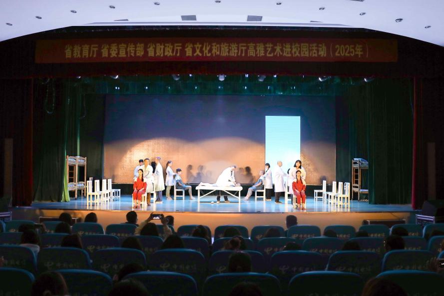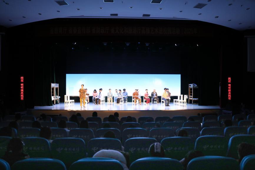 11月13日晚,由省教育厅、省委宣传部、省财政厅、省文化和旅游厅联合开展的2025年江苏省高雅艺术进校园活动——扬剧《推拿》,在我校图书馆多功能报告厅精彩上演,为我校观演师生带来了一场情感与心灵交汇的演出。