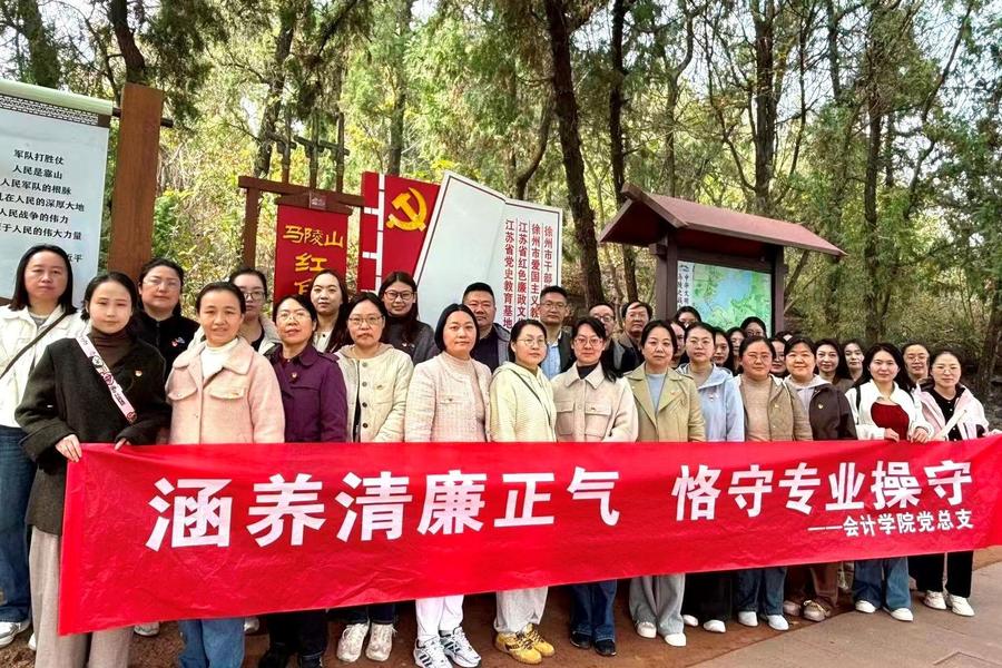 为深化党性修养,筑牢廉洁防线,会计学院党总支于11月15日组织全体师生党员赴江苏省新沂市开展主题党日活动,通过实地践学强化党员的廉洁自律意识与职业操守。