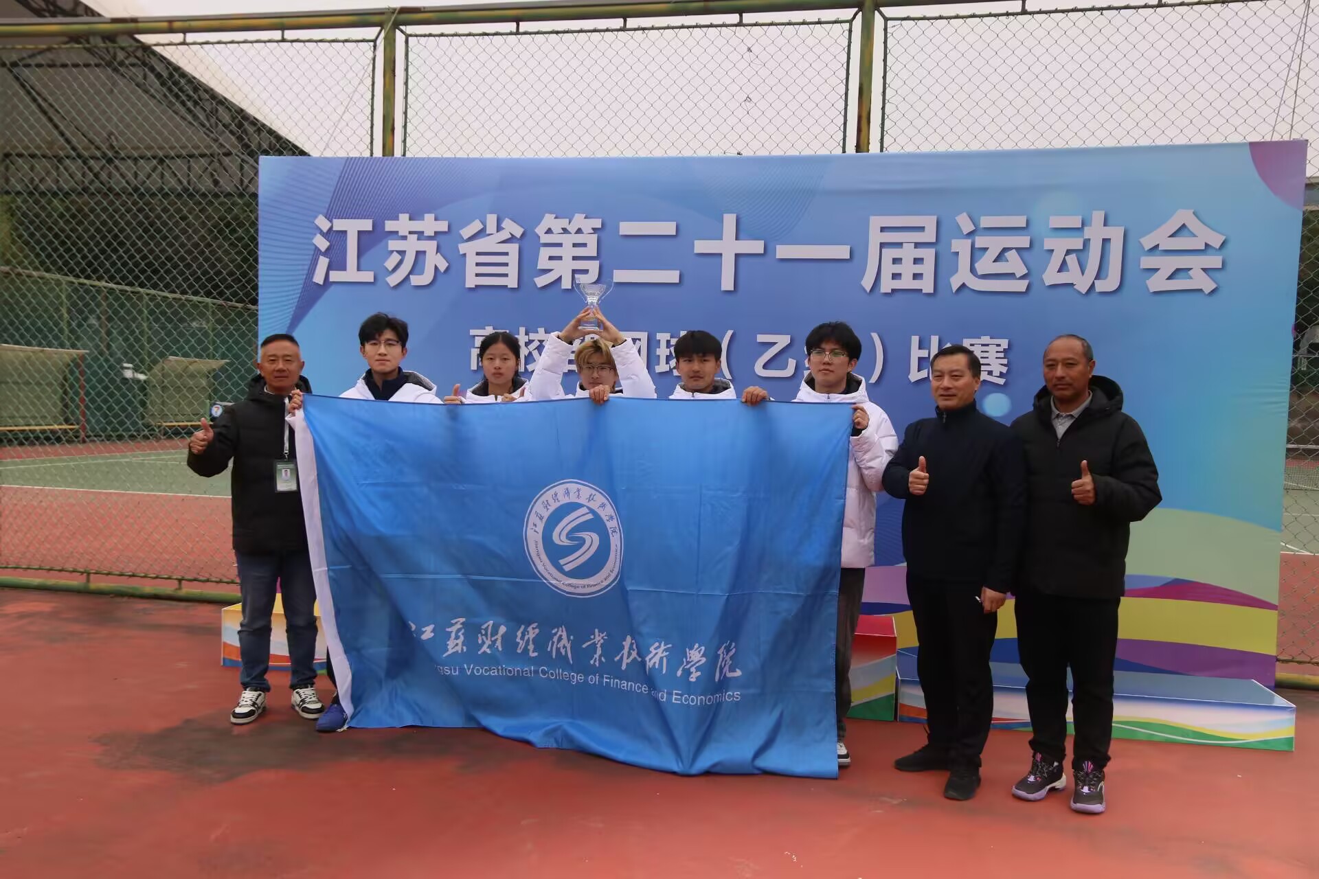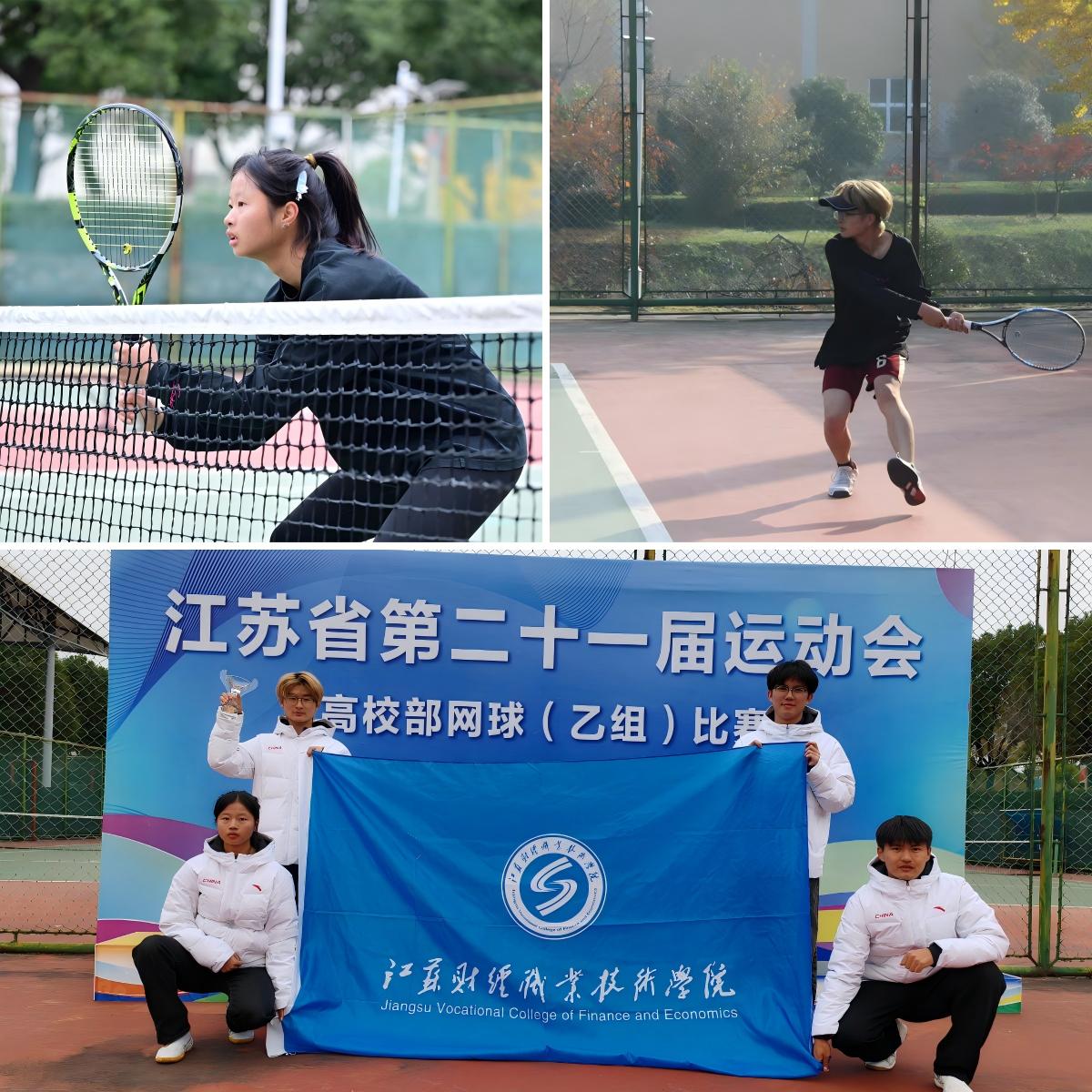 在11月12日至17日举行的江苏省第二十一届运动会高校部网球(乙组)比赛中,我校网球队奋勇拼搏,荣获男子团体赛与男子单打两项银牌,并取得混合双打第五名及团体总分第五名的历史最好成绩。