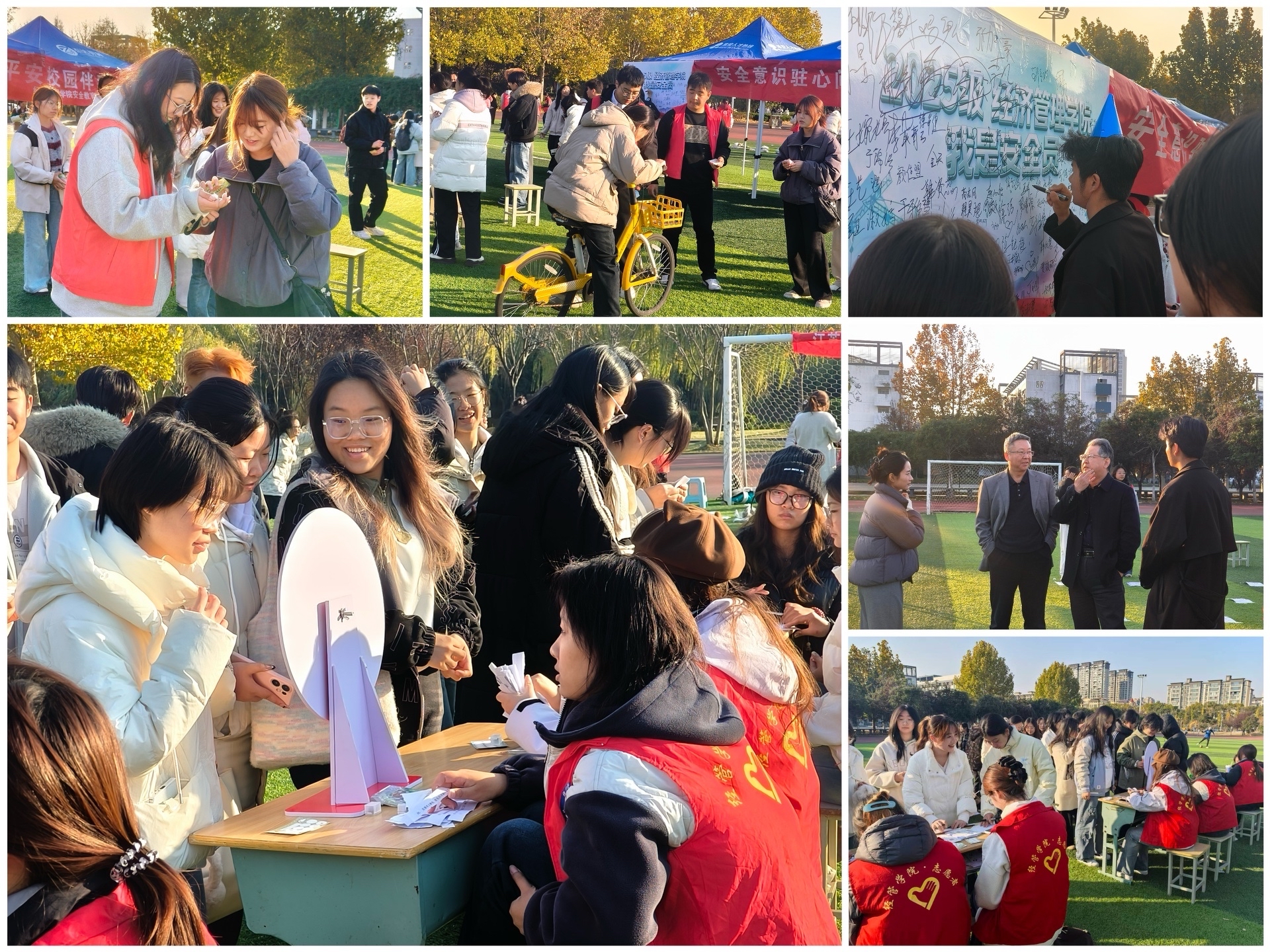 为深入推进校园安全文化建设,提升学生安全防范意识与自我保护能力,11月19日下午,经济管理学院在西操场成功举办“安全意识驻心间,平安校园伴我行”主题教育游园会。学院党总支书记卢海涛、副书记章尧东亲临活动现场,实地了解活动开展情况,亲切慰问工作人员与参与学生,并就进一步做好学生安全教育工作提出明确要求。卢海涛指出:“安全是学生成长成才的基本前提,必须将安全教育贯穿育人全过程,推动安全意识内化于心、外化于行,营造‘人人讲安全、事事为安全、时时想安全’的校园氛围。”