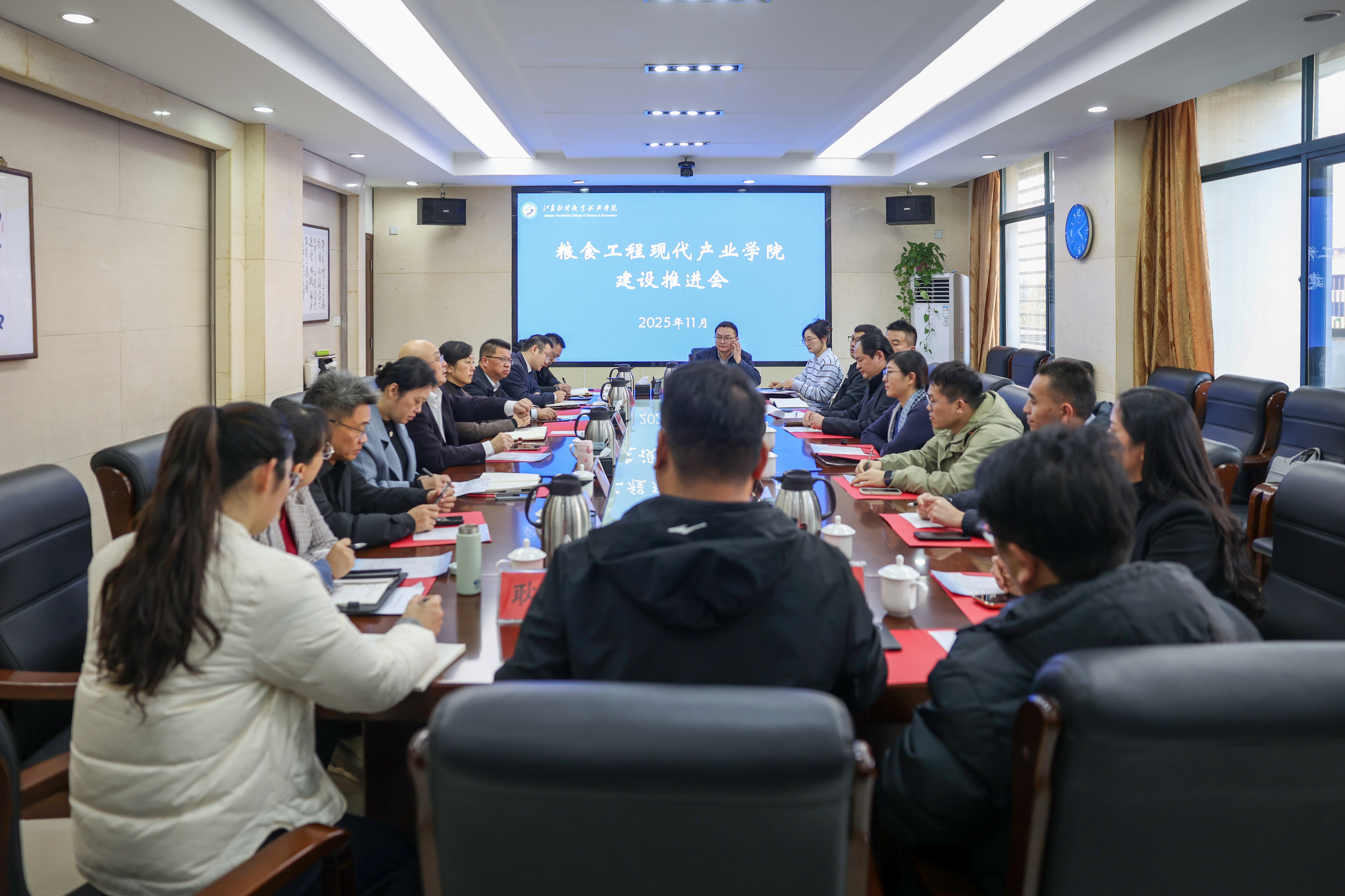 11月26日下午,我校粮食工程现代产业学院建设推进会在明德楼310会议室召开。益海嘉里金龙鱼食品集团股份有限公司淮安央厨总经理沙中梅、北京三快在线科技有限公司(美团)江苏区域运营经理杨俊祥、江苏怡福酒店管理有限公司董事长郝亚东等企业负责人携团队应邀出席。校长张维、副校长王丹、鲍建青,以及学校校长办公室、后勤服务中心、产教融合处、粮食与食品药品学院等部门负责人参加会议。会议由张维主持。