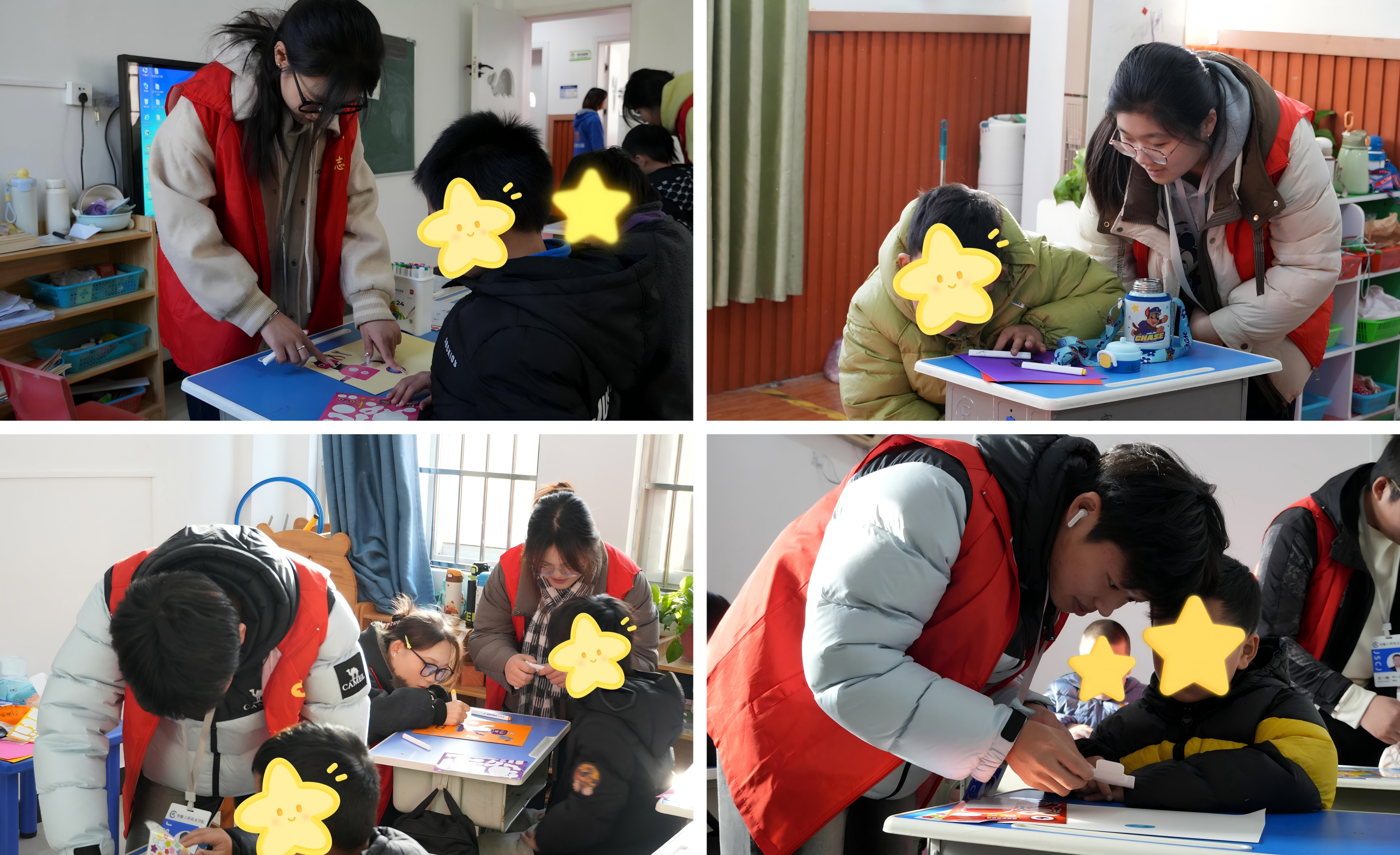 创作过程中,孩子们专注投入,在志愿者的耐心陪伴下,一个个造型独特、充满童趣的机器人跃然纸上,每一笔色彩都承载着他们对世界的独特感知。志愿者们全程温情陪伴,及时回应孩子们的需求,用鼓励的话语激发他们的创作热情,课堂上充满欢声笑语。