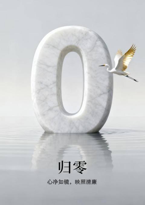 为确保比赛的公平公正,主办方制定了严格的评审标准,从主题契合度、创意性、技术完成度、传播潜力等四个方面对作品进行综合评估。其中,24数媒2王天涯《归零》海报获得平面类一等奖,这幅作品以极简意象诠释廉洁深意,巨型大理石“0”字矗立如镜面,白鹭振翅掠过留下一抹金辉,水波轻漾映照虚实空间。数字归零隐喻心境澄明,白鹭之洁象征操守高洁,素白基调与空灵构图构建出“心净如镜”的哲学意境,将“清廉自守”的抽象理念转化为可感知的视觉诗篇,在留白与象征中传递出返璞归真、守正守廉的东方智慧。