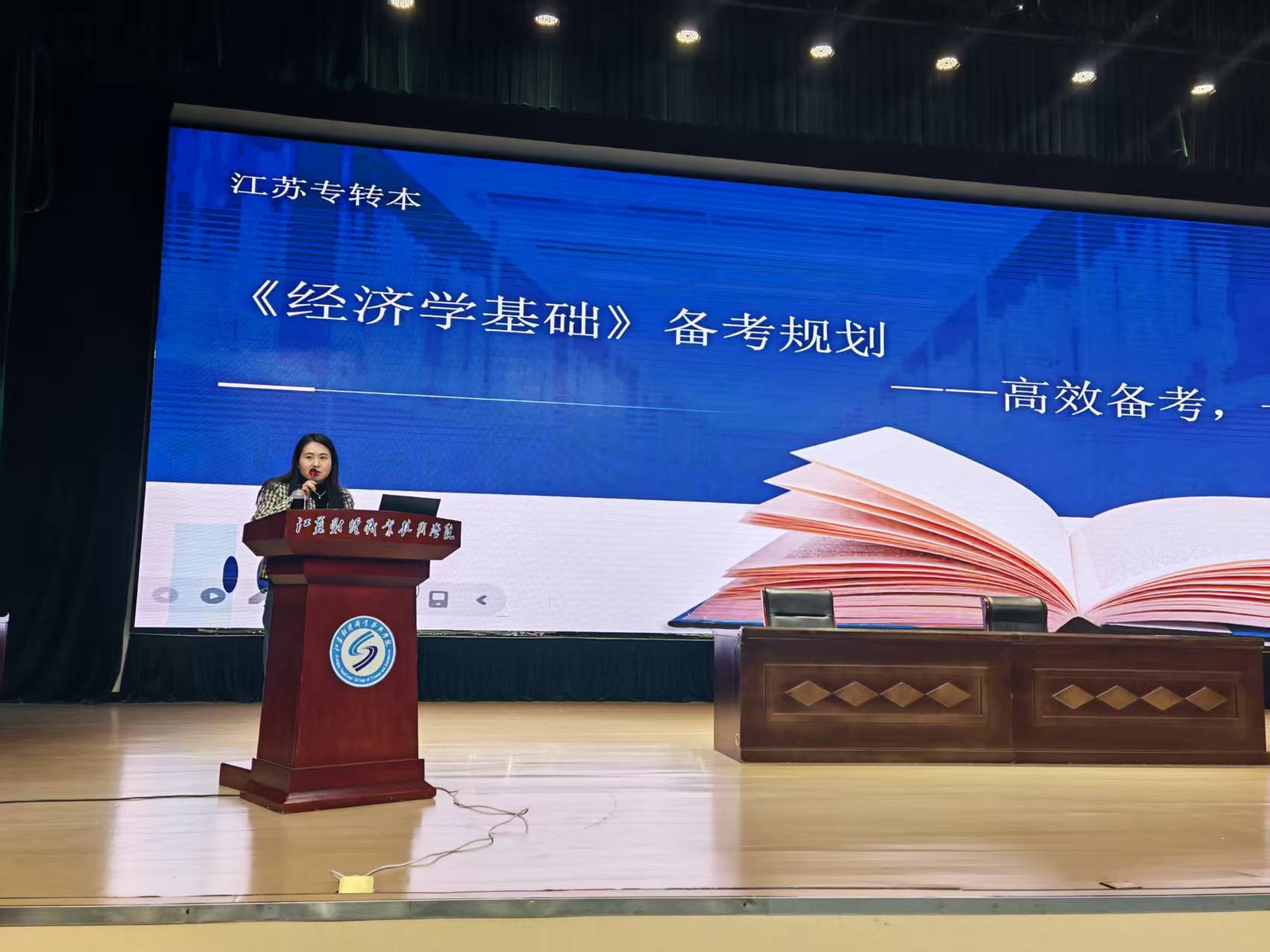 宣讲会核心环节紧扣高等数学、大学语文、英语及经济学四大科目展开,四位资深教师为在场学生奉上了一场内容丰富、见解独到的备考指导。高等数学主讲教师朱伏波直面学生常见的“畏难”心理,从考纲脉络与高频考点入手,结合典型真题进行层层剖析。他强调,数学学习贵在构建清晰的逻辑框架,并现场演示了将复杂题目拆解为基础步骤的思维方法,令同学们受益匪浅。吴芳老师针对大学语文科目备考进行了详细解读。她指出,该科目不仅考查知识储备,更侧重于人文素养与批判性思维的综合展现。她就现代文阅读的分析路径、古诗词的鉴赏门径以及高分作文的立意与结构技巧进行了细致讲解,鼓励学生“在日常中沉淀,在阅读中思考,让语文素养照亮未来之路”。英语科目的分享聚焦于听力、阅读、翻译与写作四大模块。王婷老师系统介绍了科学的复习规划,特别强调了核心词汇的基石作用与语篇分析的整体策略,并推荐了实用的学习资源与方法,助力学生提升备考效率。李倩茹老师巧妙地运用贴近生活的案例,把抽象的微观经济学原理与现实市场现象相结合,生动形象地阐释了供需理论、市场类型等核心概念,引导学生构建经济学思维,提高运用微观经济学理论分析现实问题的能力。