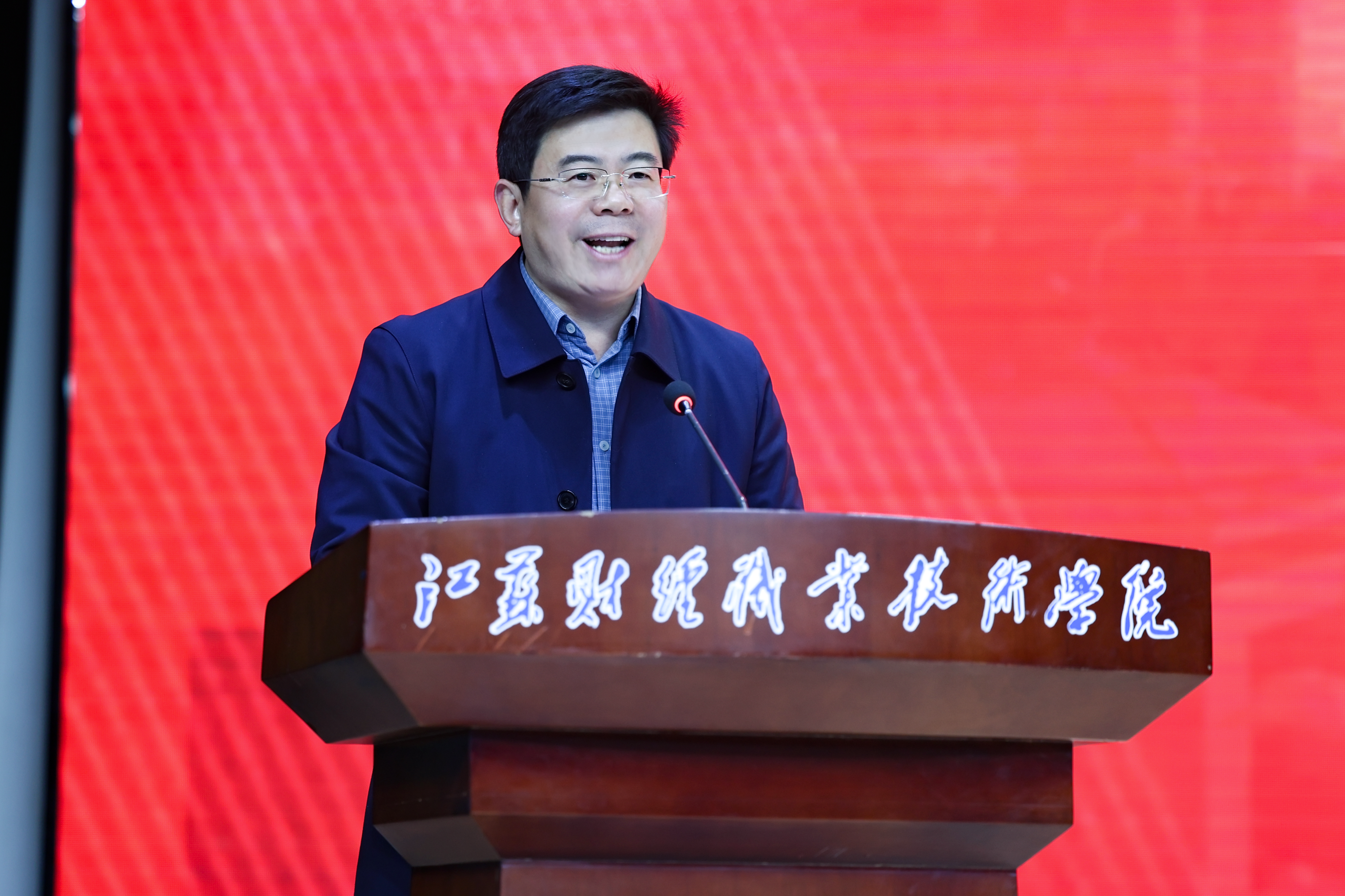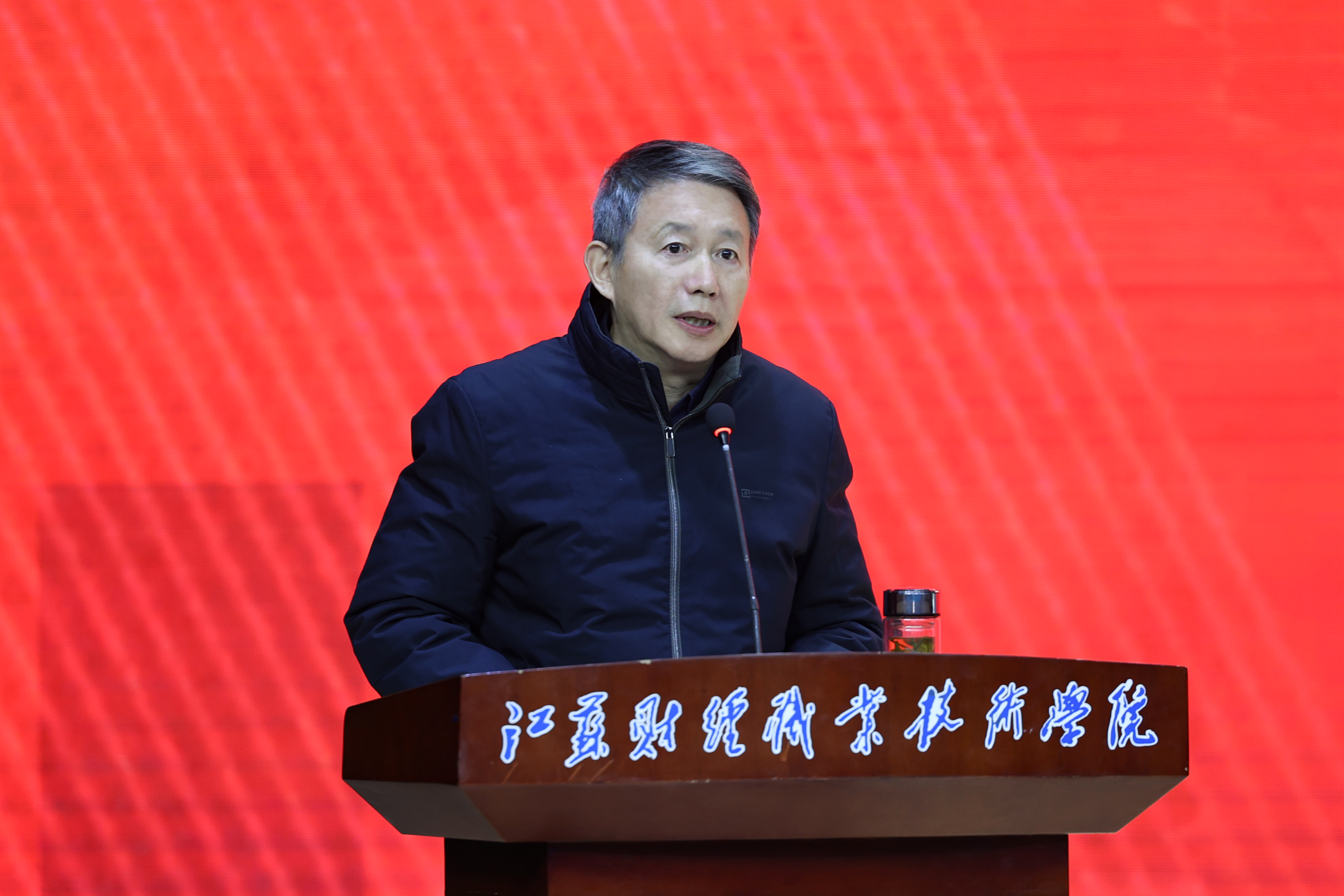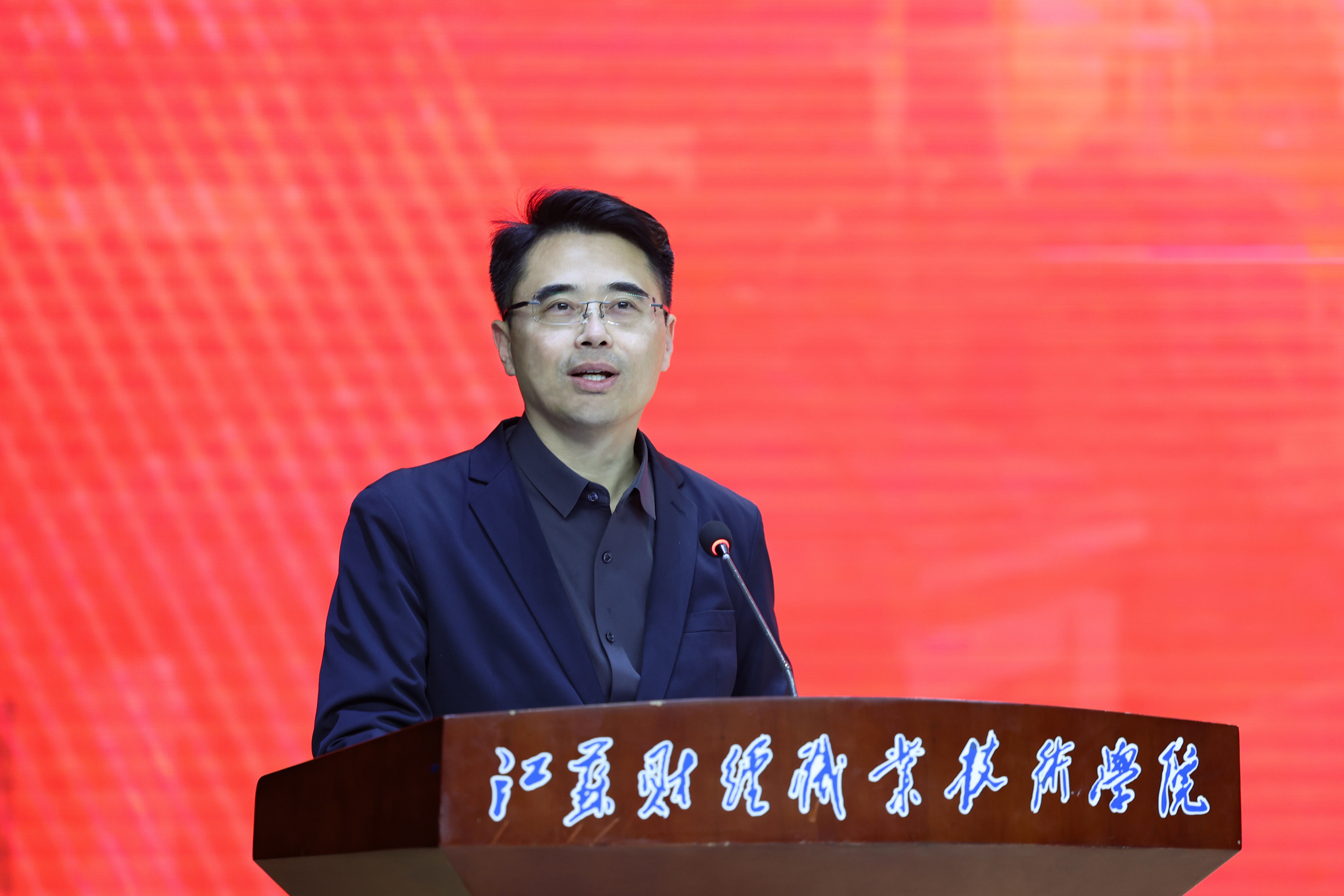 开幕式上,江苏财经职业技术学院党委书记闫超栋致欢迎辞,对大会召开表示热烈祝贺,向莅临现场的专家学者致以诚挚欢迎,并介绍了学校概况。他表示,学校作为具有鲜明财经底色和粮商特色的省级示范性高等职业院校,紧密对接区域经济社会发展需求,着力构建“数智素养+财务技能”的人才培养模式。当下,数智技术正深刻重塑社会生产生活与人类认知模式,本次研讨会聚焦“数智时代的哲学思考”,既响应时代呼唤,更与学校正在推进的“数智素养”培养和哲学社会科学研究高度契合。期待通过本次交流为学校哲学社会科学研究与教育教学改革注入新动能。