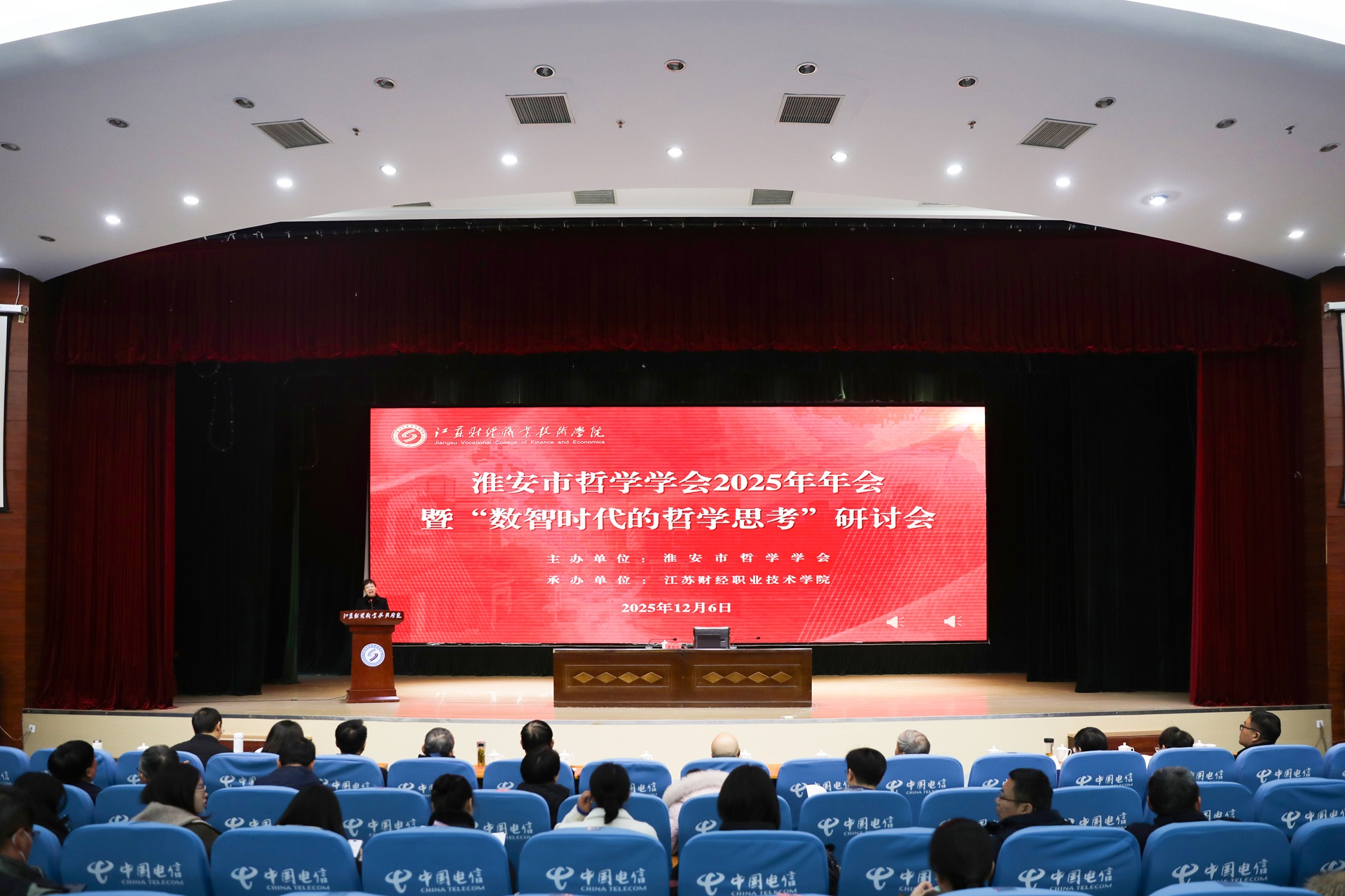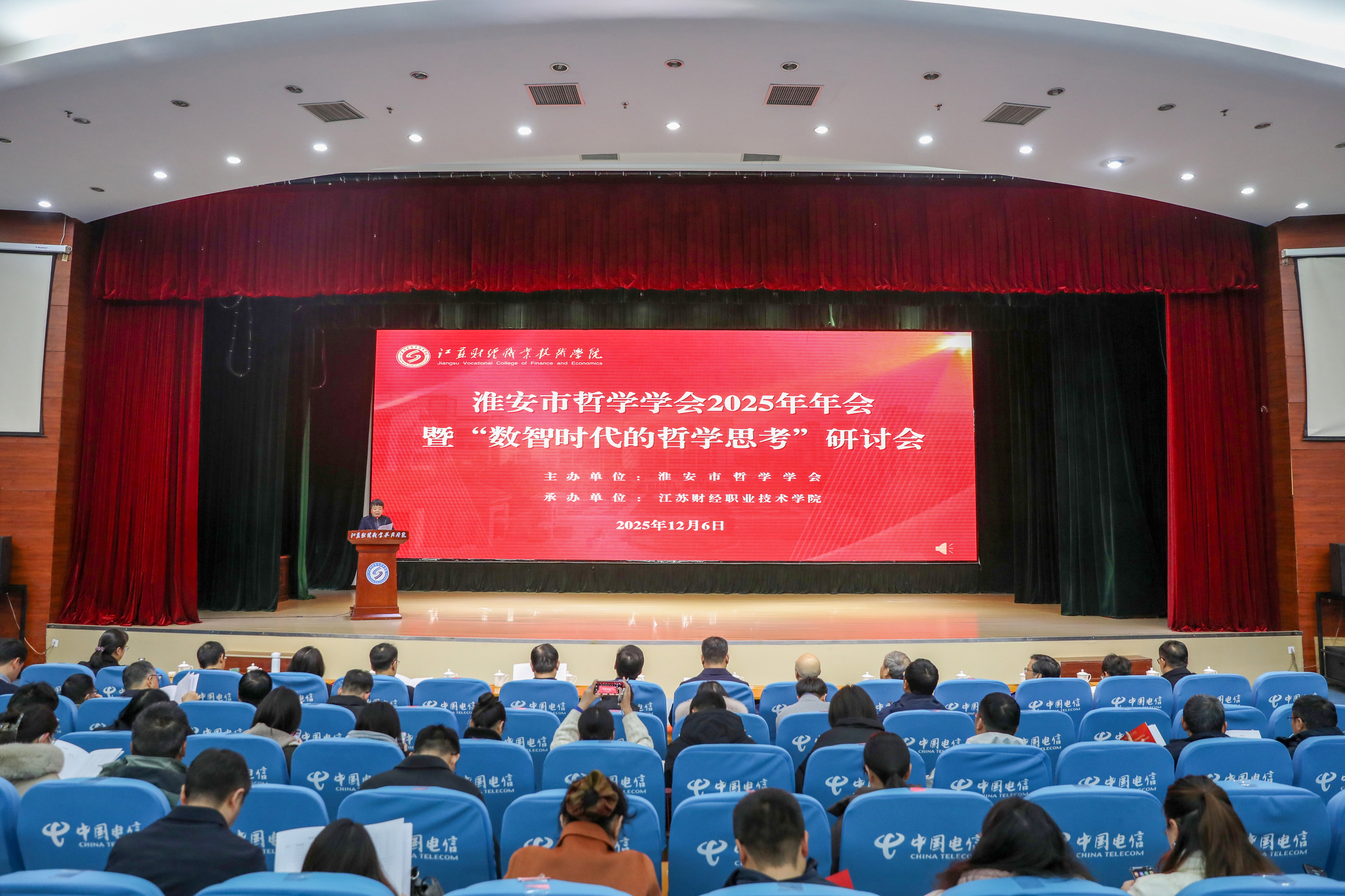 12月6日,淮安市哲学学会2025年年会暨“数智时代的哲学思考”研讨会在江苏财经职业技术学院举行。本次会议由淮安市哲学学会主办、江苏财经职业技术学院承办,来自淮阴师范学院、淮阴工学院、江苏食品药品职业技术学院、江苏电子信息职业学院、江苏护理职业学院、江苏财经职业技术学院等6所驻淮高校及淮安市委党校的150余名专家学者齐聚一堂,围绕数智时代的哲学基础、伦理挑战、教育变革等核心议题,共话数智时代的哲学命题与实践路径。