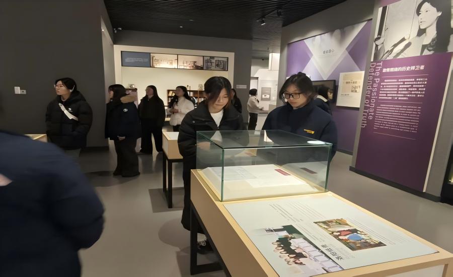 随后,师生们怀着崇敬的心情来到淮安市张纯如纪念馆。纪念馆以“不能忘却的记忆”为主题,通过大量珍贵的历史照片、文献资料、影像视频以及场景复原,生动再现了张纯如女士为揭露南京大屠杀真相、捍卫历史正义而不懈奋斗的一生。师生们有序入馆参观馆内史料、文物与影像资料,缅怀张纯如揭露南京大屠杀历史真相的事迹,感悟其以笔为枪捍卫历史与生命尊严的精神,深化了对生命意义与历史担当的认知。