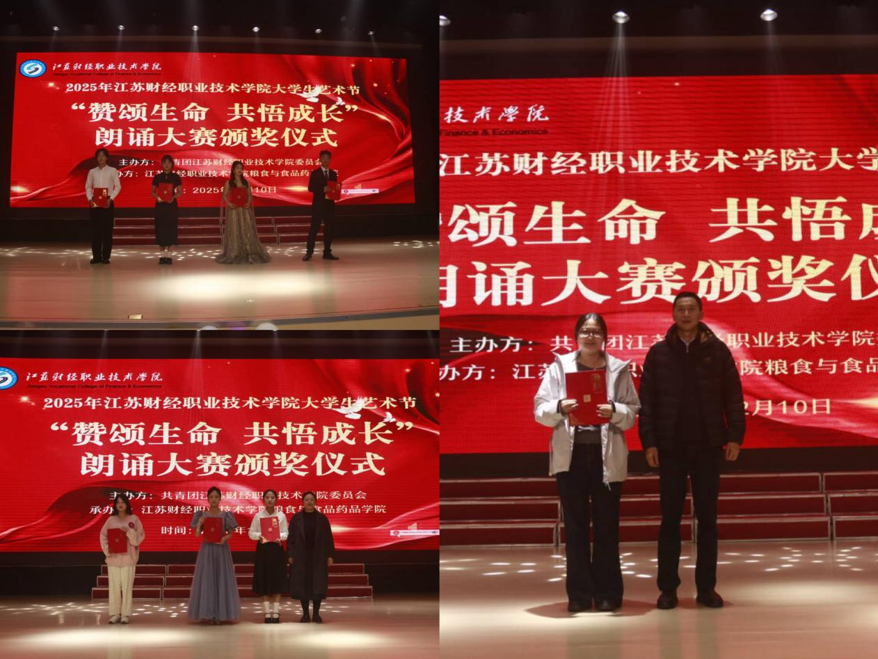 为深入贯彻落实《江苏财经职业技术学院关于加强学生生命教育的实施意见》的文件精神,引导学生感悟生命价值、树立积极成长理念,12月10日,由校团委、关工委秘书处主办,粮食与食品药品学院承办的2025年“赞颂生命 歌颂成长”校园朗诵大赛在学校图书馆多功能报告厅圆满举行。校团委书记王亚南及各二级学院分团委书记出席活动,与近500名师生共同见证这场以声音传递生命力量的盛宴。