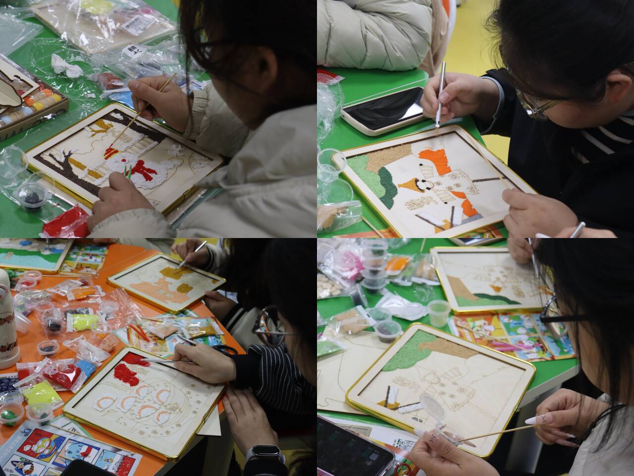 随后的二十四节气纸浆画手作环节,将文化科普与创意实践巧妙结合。心理健康部的同学首先系统讲解了二十四节气的起源脉络、各节气的核心习俗以及背后蕴含的自然与人文意义,让同学们对节气文化有了更全面的认知。紧接着,通过现场演示,详细指导大家掌握纸浆调配、构图技巧、色彩搭配等创作要点。同学们自主选题、尽情发挥创意,将对节气的理解融入画笔与纸浆之中,进一步深化了对传统文化的认同与热爱。
