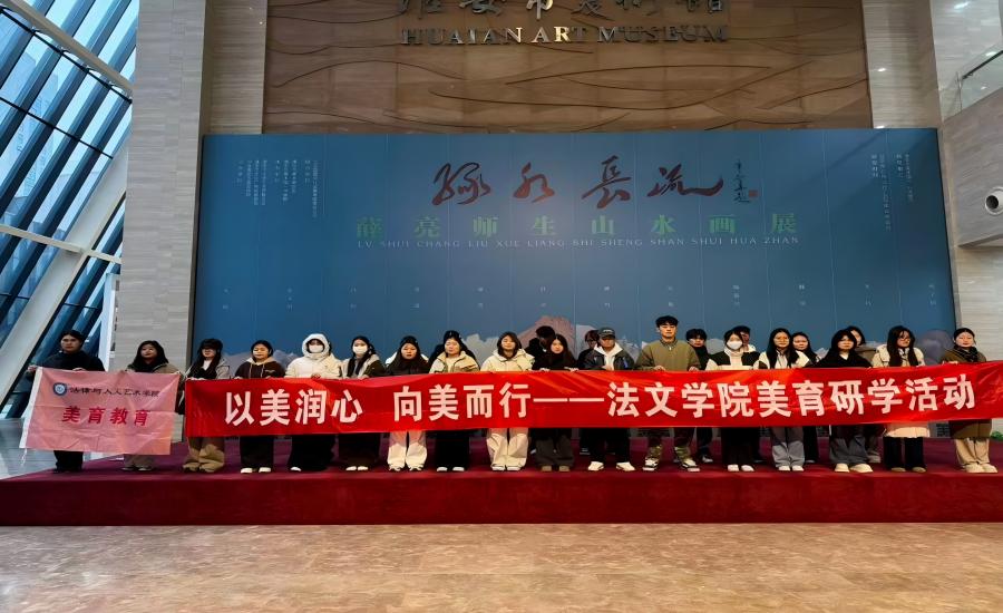 为深化数字艺术产业学院建设实践,加强美育活动,提高专业能力,12月20日下午,法文学院受淮安市美术馆(书画院)邀请,组织视觉传达设计专业学生参加“绿水长流——薛亮师生山水画展”开幕式并开展现场教学活动。