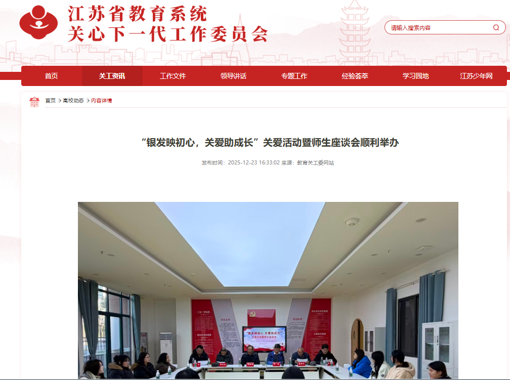 冬日暖阳照校园,关爱情深暖人心。12月17日,学校关心下一代工作委员会携手学生处、学生社区教育管理服务中心,在学校大学生五育融合发展中心共同举办“银发映初心,关爱助成长”关爱活动暨师生座谈会。校关工委副主任蒋超五、常务副主任张春、秘书长郭富忠、副秘书长蔡振华,离退休工作处处长朱刚出席活动,与20余名发展型资助育人对象代表亲切座谈。活动由学生社区教育管理服务中心副主任林森主持。
