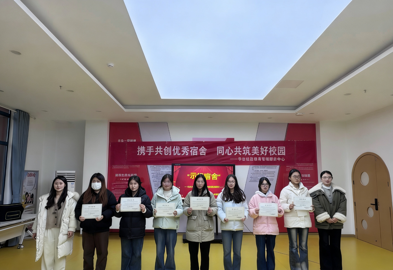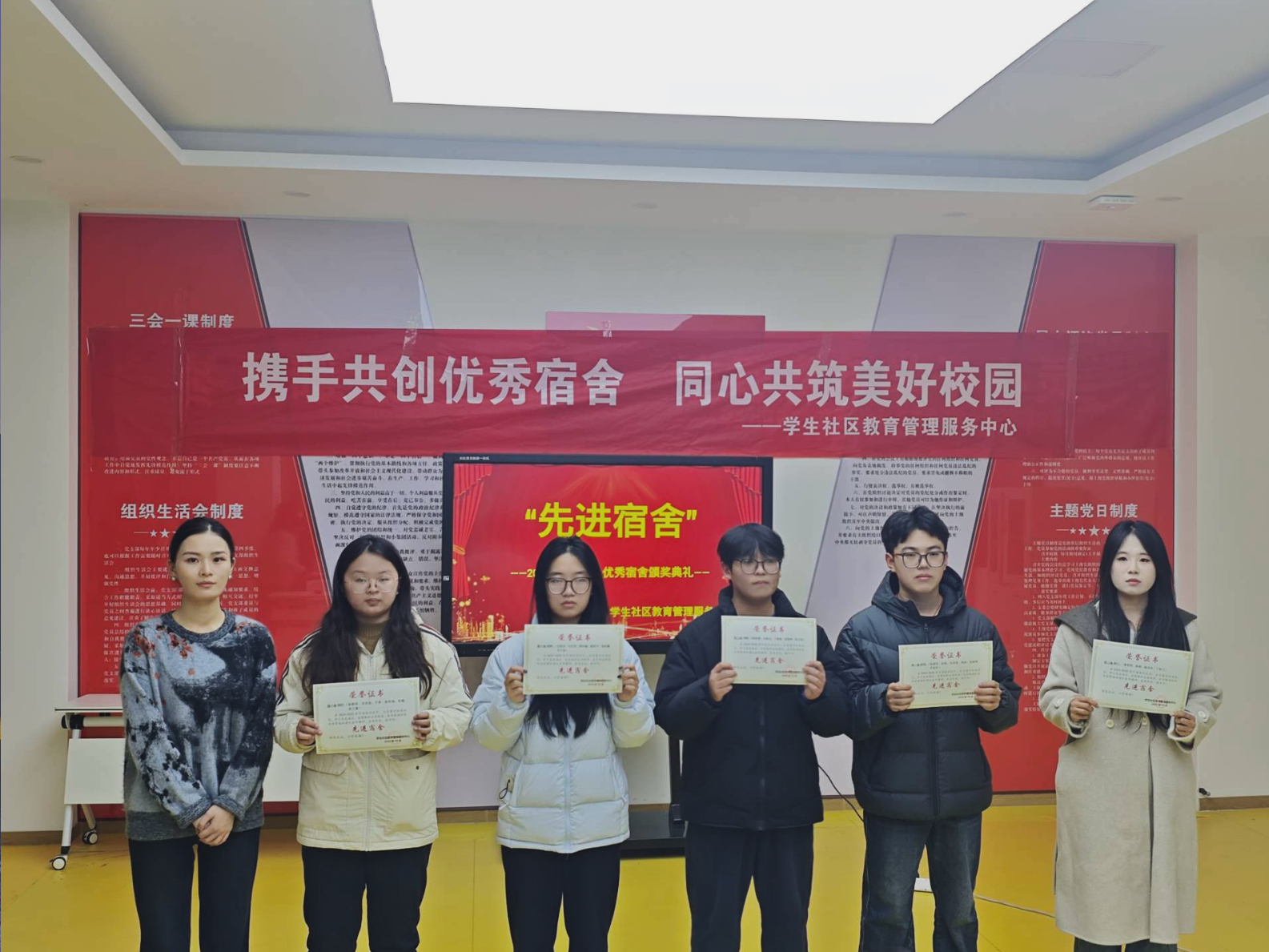 为表彰先进、树立典范,进一步推进文明宿舍建设,营造安全、文明、和谐的社区环境,学生社区教育管理服务中心于12月24日下午在青年研习中心举行了2024-2025学年“先进宿舍”“示范宿舍”“标杆宿舍”颁奖仪式。学生社区教育管理服务中心副主任沈玲、教师朱哲、各二级学院驻站辅导员及全体获奖宿舍宿舍长参加了本次活动。