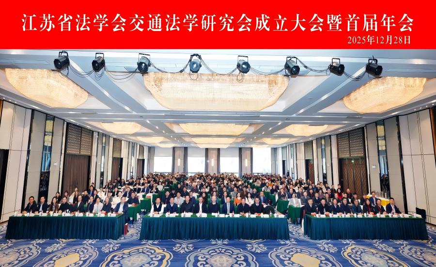 12月28日,江苏省法学会交通法学研究会成立大会暨首届年会在南京隆重举行。本次大会汇聚了来自政府、高校、科研机构及企业界的四百余位专家学者,共同见证这一交通法治领域重要学术平台的诞生。江苏省法学会党组书记、专职副会长吉巍,江苏省交通运输厅原副厅长金凌,东南大学党委副书记邢纪红等领导出席大会并致辞。我院高度重视此次盛会,应主办方邀请,由院长解瑞卿教授带队,陈海燕副教授、段东升博士、邵白杨老师一行四人参会。