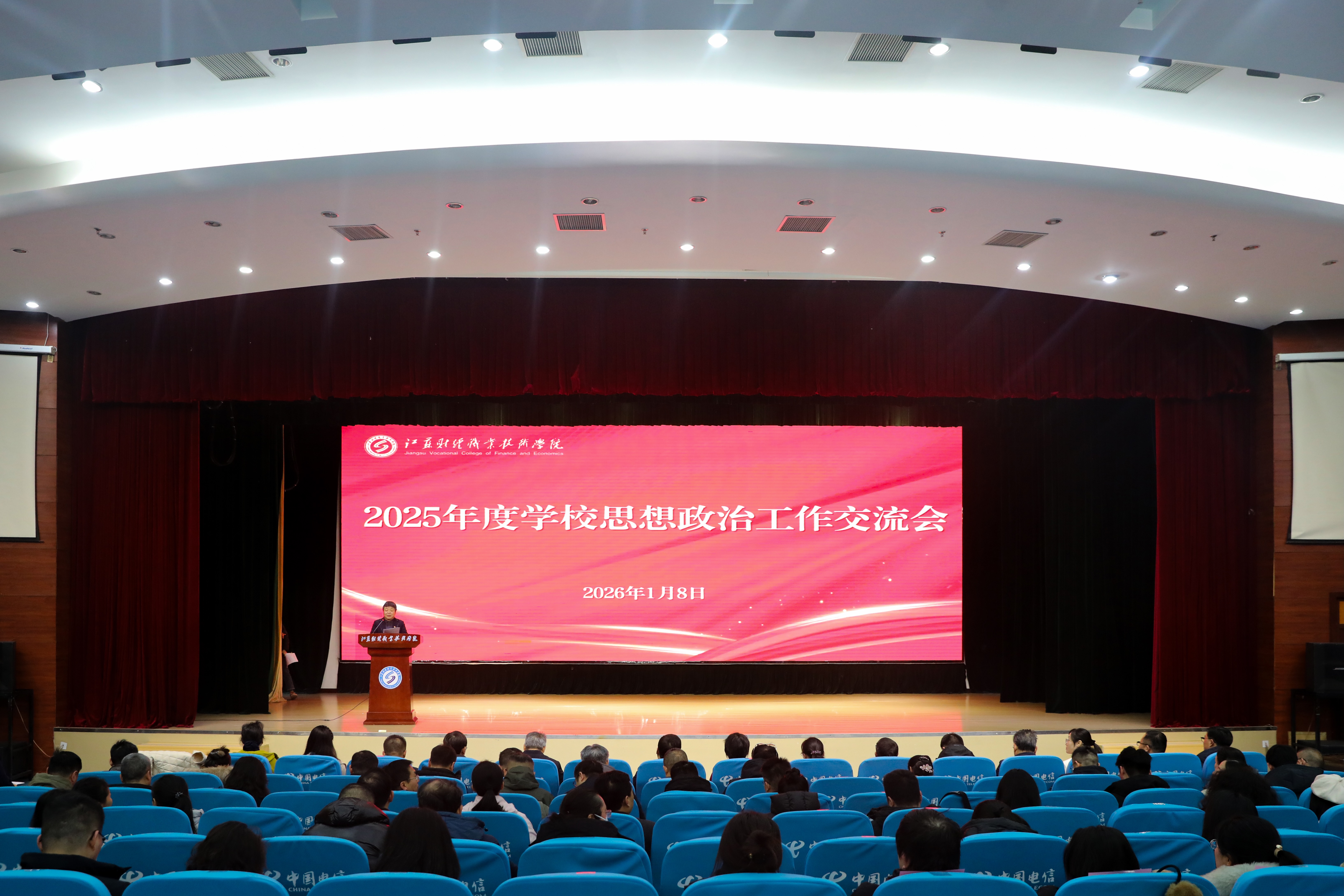 1月8日,我校在图书馆多功能报告厅召开2025年度学校思想政治工作交流会,深入学习贯彻习近平文化思想,紧紧围绕落实立德树人根本任务,全面总结2025年学校思想政治工作,系统谋划下一阶段工作思路与重点,以高质量思想政治工作助力学校高水平建设高质量发展。校领导闫超栋、曹业慧、梁枫出席会议,各党总支(直属党支部)书记、副书记、宣传委员,各党支部书记、宣传委员,党政办、组织部负责人,宣传部、学工部、团委、马克思主义学院全体人员,全体辅导员及学生代表参加会议。会议由学校党委副书记杜萍主持。
