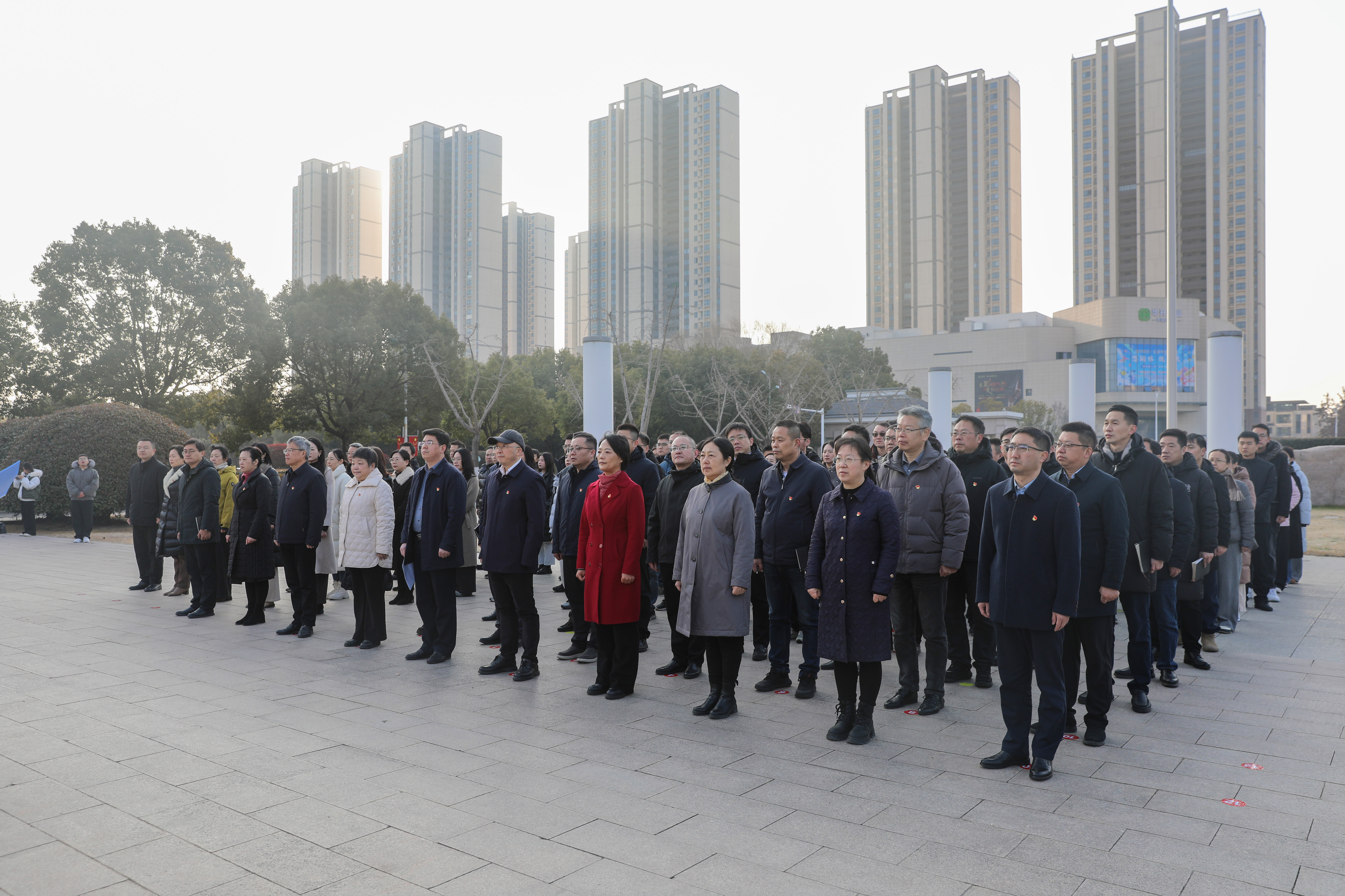 上午8时30分,翔宇文化广场庄严肃穆,周恩来铜像静静矗立,参与人员身着整洁服装、佩戴党员徽章,在指定区域有序列队,怀着无比崇敬的心情等候活动开始。