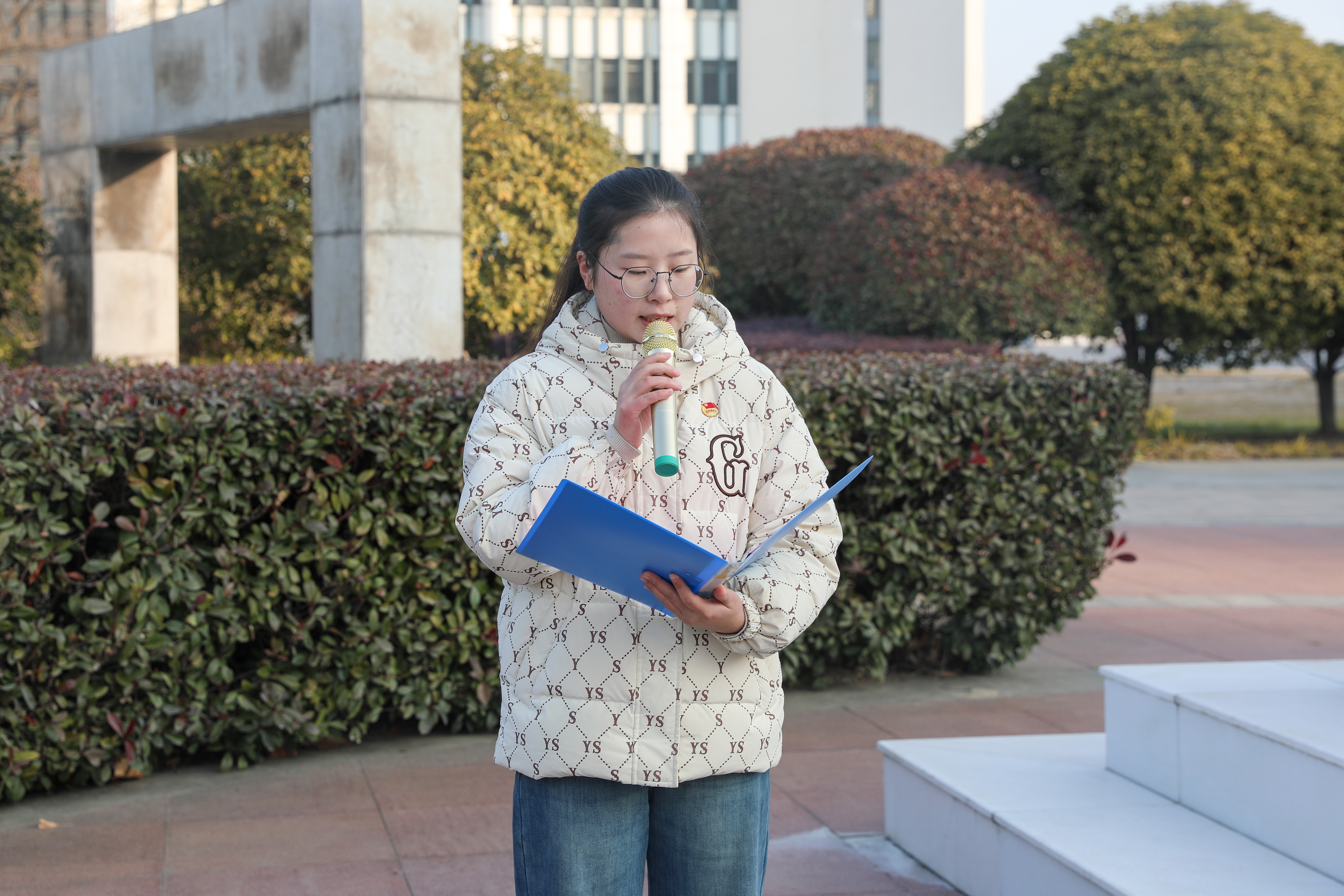 活动最后,闫超栋发表讲话。他指出,周恩来总理是近代以来中华民族的一颗璀璨巨星,是中国共产党人的一面不朽旗帜,习近平总书记概括的“六个杰出楷模”精准诠释了总理的崇高精神品格。作为总理家乡的高校,学校始终将传承弘扬周恩来崇高精神风范作为办学育人的精神内核,通过 “周恩来班”创建、主题展馆建设、特色课程开设、主题活动开展等系列举措,让伟人精神在校园落地生根、开花结果。他向全体师生提出三点希望:一是做坚守信仰、对党忠诚的传承者,让忠诚于党的信念融入血脉;二是做求真务实、勤学笃行的践行者,以实干姿态锤炼过硬本领;三是做心系人民、勇于担当的奋斗者,将个人理想融入国家发展大局,践行“把周总理家乡建设好”的殷切嘱托,为实现中华民族伟大复兴的中国梦贡献财院力量。