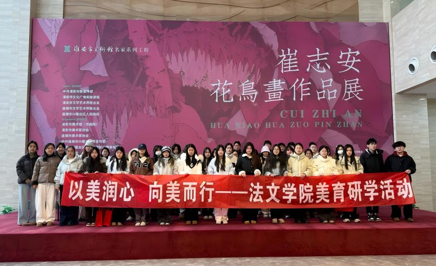 1 月 9 日上午,法文学院受邀组织师生代表走进淮安市美术馆,全程参与 “淮安市美术馆名家系列工程:崔志安花鸟画作品展” 开幕式,并同步开展现场教学观展活动。此次活动是数字产业学院推动美育与专业教育深度协同的重要实践,通过校馆合作搭建起传统文化与数字产业无缝衔接的实践平台,让学生走出课堂、直面名家佳作,在真实的艺术浸润中深化对传统艺术与现代设计融合路径的认知,助力学生开阔艺术视野、夯实创意设计基础,为培育兼具深厚审美素养与创新实践能力的数字产业人才注入强劲动力。