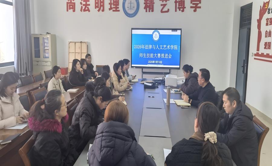 为扎实推进2026年师生技能大赛备赛工作,明确赛项推进计划,凝聚全院力量攻克备赛难点,1月13日下午,法律与人文艺术学院在S3-410会议室召开2026年技能大赛推进会议。会议由副院长王真真主持,院长解瑞卿、学生技能大赛所有指导老师及个人技能赛项教师参会。