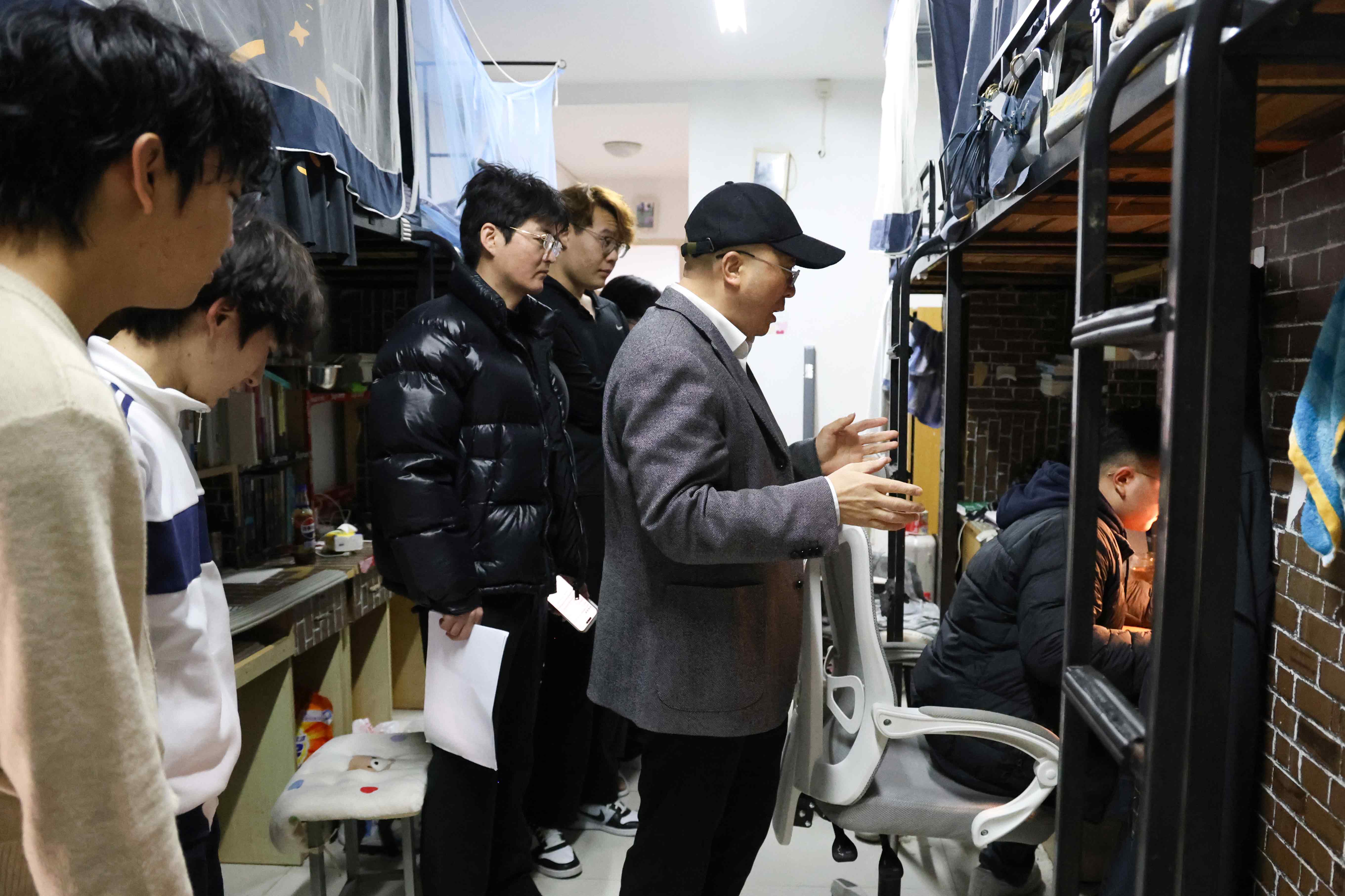 3月1日下午,校长张维走进学生社区,实地走访东五4009宿舍,与金融专业的同学们围坐交流,深入了解学生的学习生活情况。