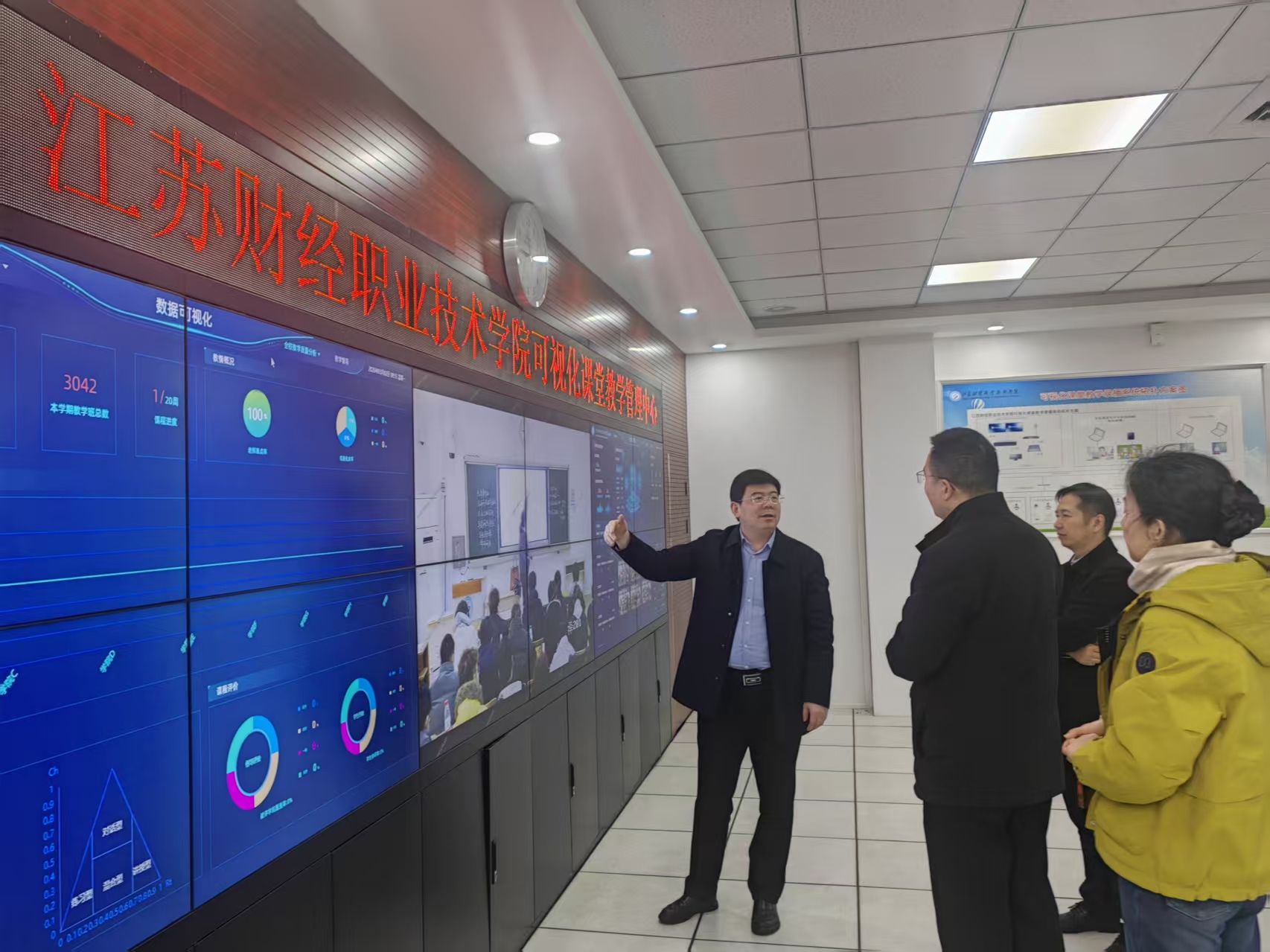 3月4日上午党委书记闫超栋带领智慧校园服务中心在学校可视化中心大屏前运用新部署的“AI智慧巡课系统”,调阅多个实训室及多媒体教室的课堂教学情况,详细了解“AI智慧巡课系统”的功能成效。闫超栋强调:“我们要运用数字化手段让管理‘长眼睛’、让数据‘会说话’,将教育部关于关键要素改革的要求落实到每一分钟课堂中。”