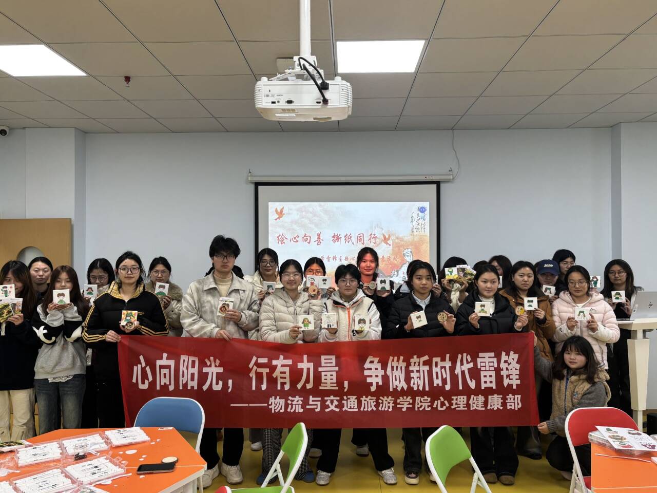 为深入践行学雷锋志愿服务精神,将雷锋精神与心理健康教育深度融合,引导学生释放情绪压力、培育积极心理品质,3月11日下午,物流学院在大学生团体辅导室开展“绘心向善·撕暖同行”学雷锋主题心理健康创意活动,同学们积极参与,在动手创作与暖心互动中感受助人自助的温暖力量。