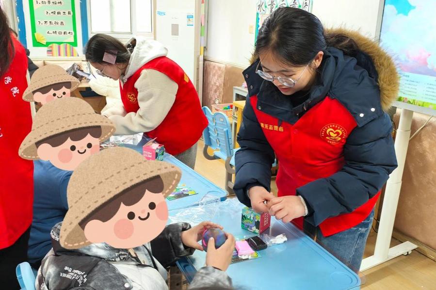 孤独症儿童就像藏在自己世界里的星星,不善言辞,也不善与人交流。面对这些可爱又敏感的孩子,志愿者们没有丝毫生疏,主动蹲下身,以微笑和眼神拉近距离。在康复师指导下,大家从简单的击掌、模仿动作开始,逐步消除孩子们的戒备,一点点走进他们的小世界。