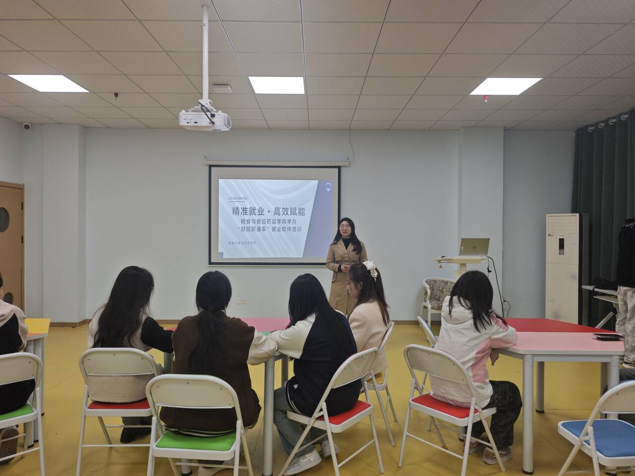 为切实强化毕业生就业服务保障,帮助学生熟练掌握就业服务软件的操作技能,提升求职效率与精准度,粮食与食品药品学院学工办和教工党支部于4月2日晚上18:00,在大学生五育融合中心二楼心理中心大教室开展“财院职通车”就业软件专项培训活动,为全院毕业生搭建了一座便捷、高效的就业服务加油站。教工党支部书记李家春老师、专职辅导员汤韵慈老师出席本次培训,全院20多位学生积极参与、认真学习,共同提升求职核心竞争力。