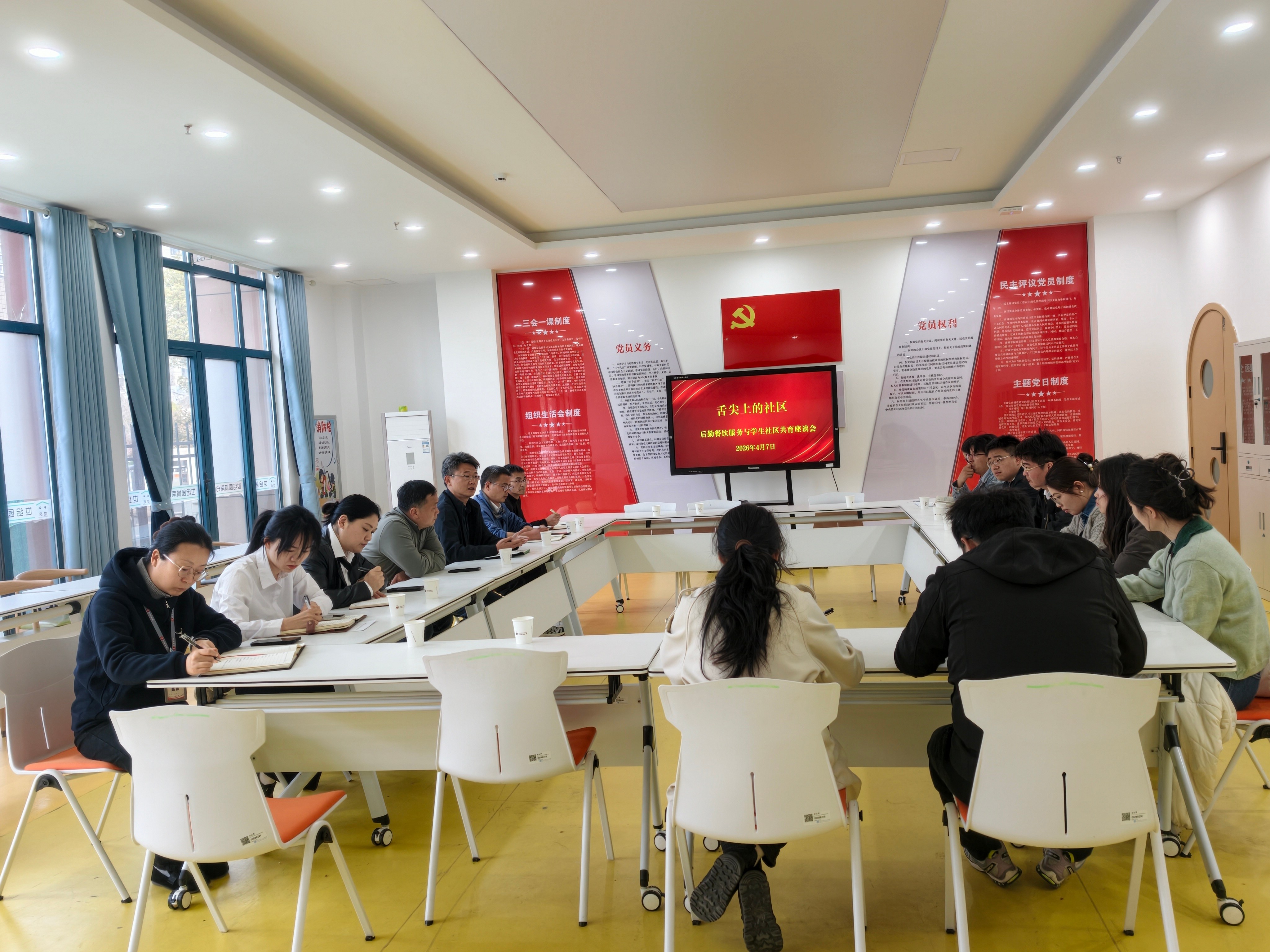 为进一步深化劳动教育改革,创新劳动教育形式,提升学生动手实践能力,4月7日,学生社区教育管理服务中心联合后勤服务中心及各二级学院负责劳动教育的老师,在学生社区会议室召开专题座谈会,共商本学期学生走进食堂参与菜品制作的具体事宜。会议由学生社区教育管理服务中心副主任林森主持。